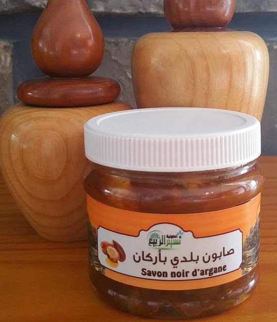 En exclusivité, je vous propose du savon noir à l’eucalyptus, argan, ou à la rose en provenance de la coopérative féminine Nessma Rabie au Maroc.